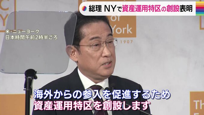 ニューヨークを訪れている岸田総理は、現地の投資家らに対して経済政策の講演を行い、英語のみで行政手続きが行える資産運用特区の創設などを表明しました。岸田総理「海外からの参入を促進するため、資産運用特区…