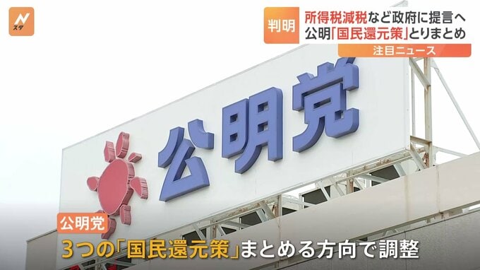 政府が今月まとめる経済対策をめぐり、公明党が所得税の減税など3つの「国民還元策」を政府に提言する方向で調整していることが分かりました。岸田総理は今月まとめる経済対策に向け、与党に提言するよう指示して…