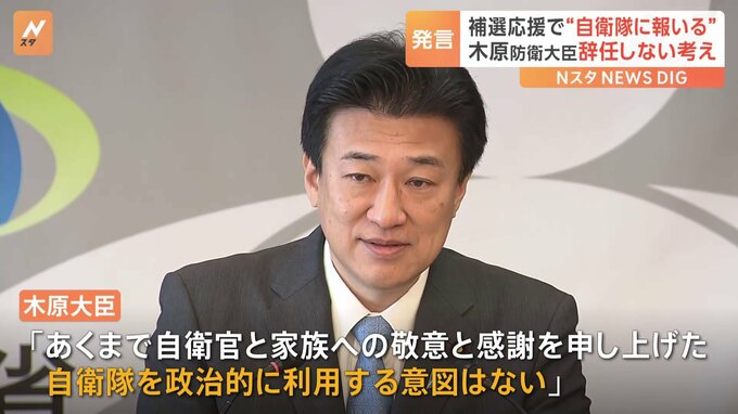 木原防衛大臣は、衆議院補欠選挙の応援演説で行った発言を野党側が問題視し、更迭を求めていることについて、辞任しない考えを示しました。木原防衛大臣は、衆議院・長崎4区の補欠選挙の応援演説で「自衛隊ならび…