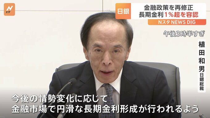 今後、私たちの住宅ローン金利などにも影響を与えることになりそうです。日本銀行はこれまでの金融政策を再修正し、事実上「1%」としてきた長期金利の上限を「1%をめど」に見直し、一定程度超えることも容認します…