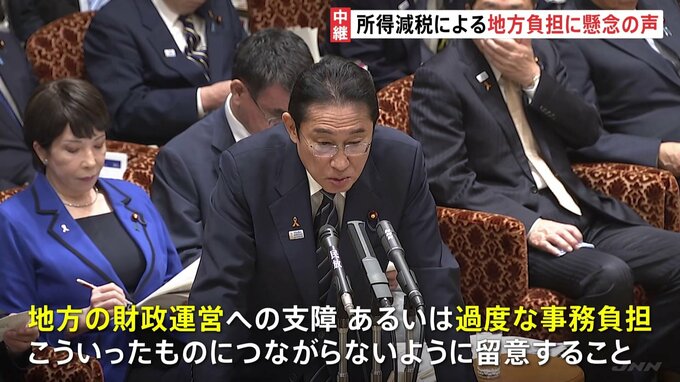 国会では参議院予算委員会が行われていて、岸田総理は所得税減税に伴う地方自治体への負担に対し、「留意しながら適切な対応をしたい」と述べました。国会記者会館から中継です。与党からは所得税減税に伴い、地方…