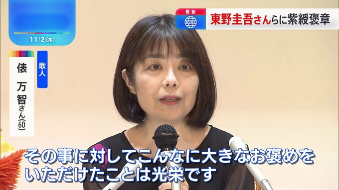 秋の褒章の受章者が発表されました。「サラダ記念日」などで知られる歌人の俵万智さんや、直木賞作家の東野圭吾さんらに紫綬褒章が送られました。俵万智さん「本当に自分としては大好きな短歌を思う存分作ってきた…