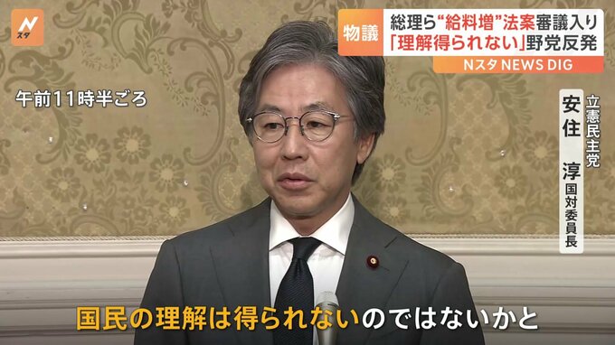 岸田総理や大臣の給与を増やす法案がきょう国会で審議入りしました。野党は「世間の理解が得られない」と追及していて、政府・与党は対応に迫られています。立憲民主党 山岸一生 衆院議員「総理大臣が12月8日の…