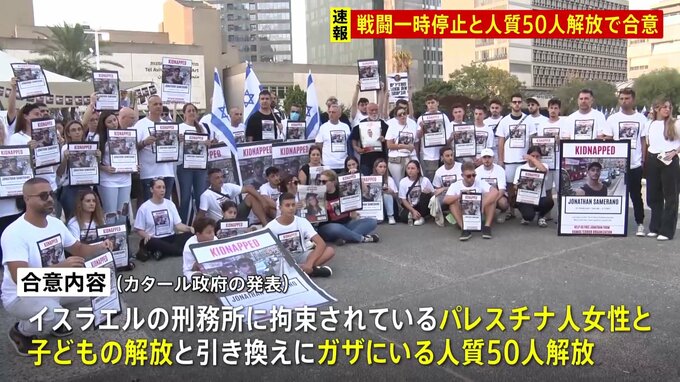 パレスチナ自治区ガザで、イスラム組織ハマスに拘束されている人質の解放と戦闘の一時停止に向けた交渉について、イスラエルとハマス双方が合意したと、仲介を行っている中東カタールが発表しました。カタール政府…