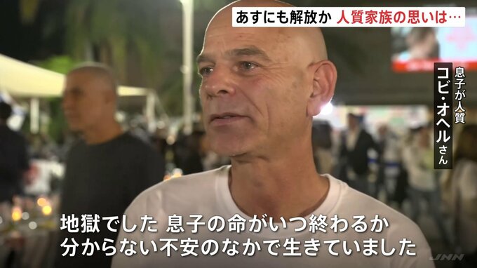 ハマスの人質として息子が拘束されているという父親がJNNの取材に応じ、合意が発表された現在の胸の内を明かしました。記者「交渉の合意を受けて、テルアビブでは改めて、人質が無事に戻ってくるようにと祈る集会…