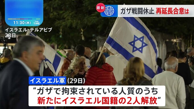 イスラエルとイスラム組織ハマスが合意した戦闘の一時停止の終了期限が迫るなか、ハマスが拘束していた人質2人が新たに解放されました。戦闘停止期間の再延長をめぐる交渉は続いていて、合意できるかが焦点となっ…