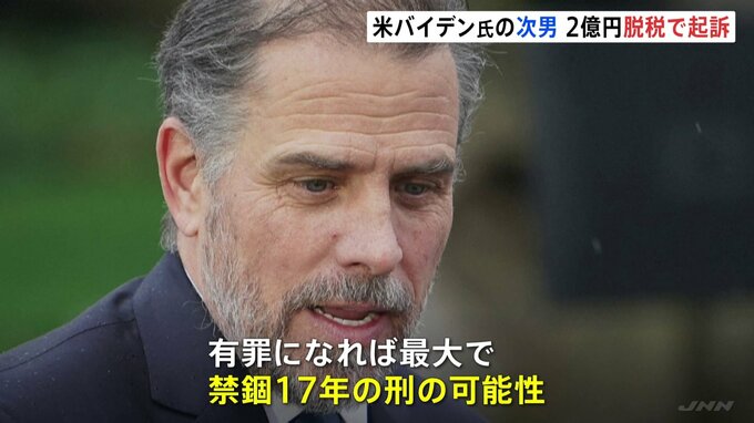アメリカ・バイデン大統領の次男が日本円で2億円もの所得税を脱税していたとして起訴されました。カリフォルニア州の大陪審は7日、バイデン大統領の次男・ハンター氏を9つの罪で起訴しました。捜査を担当する検察…