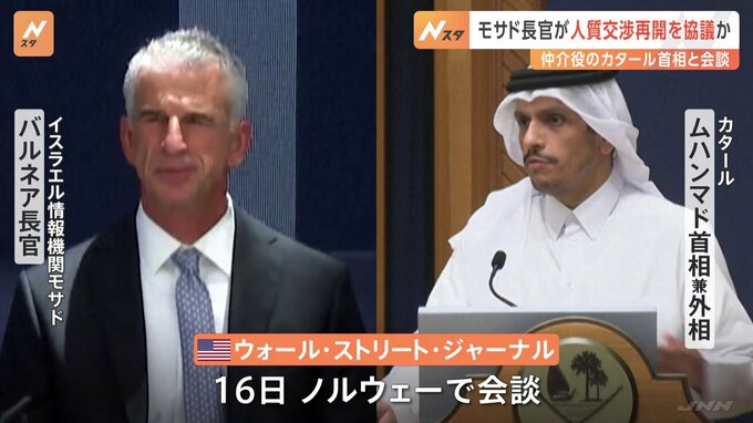 イスラエル情報機関モサドの長官がイスラム組織ハマスとの交渉の仲介を担うカタール政府と協議を行ったとアメリカメディアが報じました。人質交渉の再開について模索しているものとみられます。アメリカのウォール…