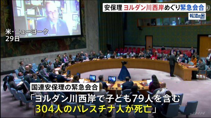 イスラエル軍によるパレスチナ自治区ガザへの攻撃が続くなか、国連の安全保障理事会は緊急会合を開き、犠牲者が急増しているヨルダン川西岸の情勢について協議しました。29日に開かれた国連安保理の緊急会合では、…
