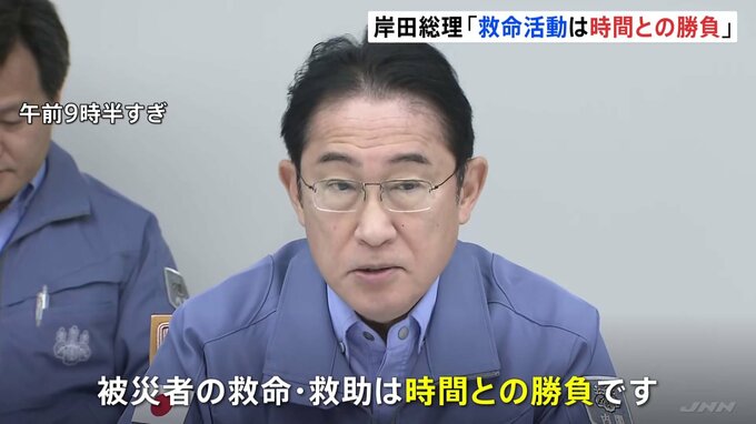 地震を受けた政府の対応です。岸田総理「被災者の救命・救助は時間との勝負です」総理官邸で開かれた非常災害対策本部で、岸田総理は自衛隊や警察・消防に対して救命・救助活動に全力を挙げるよう指示しました。ま…
