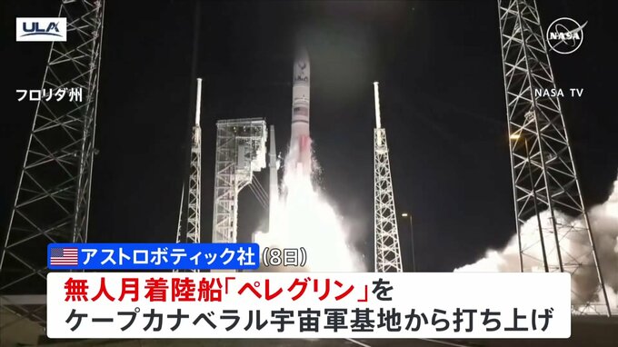 アメリカの宇宙企業アストロボティック社が、民間初の月面着陸を目指し、無人の「月着陸船」を打ち上げました。アメリカのアストロボティック社は8日未明、無人の月着陸船「ペレグリン」をフロリダ州のケープカナ…