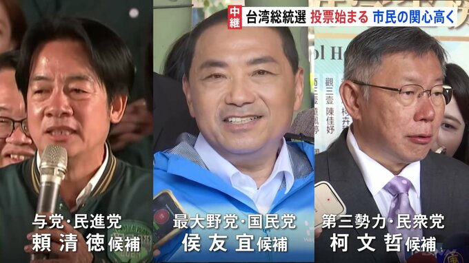 台湾総統選挙の投票が始まりました。中国と距離を置く与党候補と経済面での融合をめざす野党候補2人の、あわせて3人による争いです。経済面、軍事面で圧力を強める中国との関係が大きな争点となっている台湾総統選…