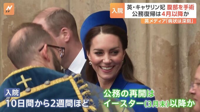 イギリス王室は、ウィリアム皇太子の妻・キャサリン妃が腹部の手術を受けたと発表しました。また、チャールズ国王も病気の治療を行うということです。キャサリン妃「みなさんが今宵を楽しんで頂けますように。メリ…