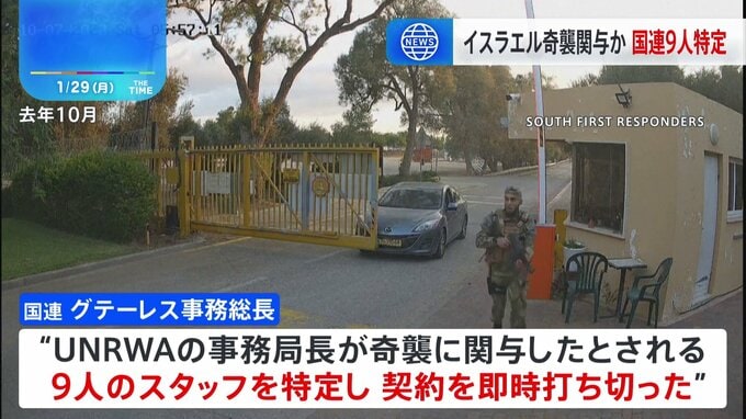 国連のグテーレス事務総長は、イスラム組織ハマスによる奇襲に関与したとされる国連機関のスタッフ9人の身元を特定したと明らかにしました。グテーレス事務総長は声明で、“UNRWA=国連パレスチナ難民救済事業機関…
