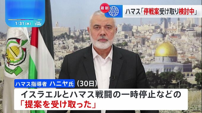 イスラエルが侵攻を続けるパレスチナ自治区ガザでの停戦をめぐり、イスラム組織ハマスの指導者は、戦闘の一時停止を含む新たな提案を受け取ったとしたうえで、「検討中だ」とする声明を発表しました。ハマスの指導…