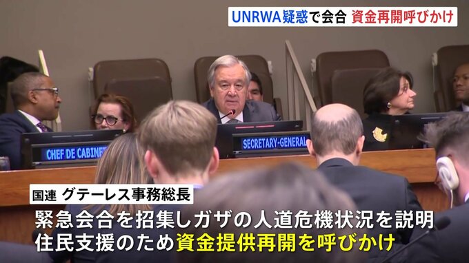 イスラム組織ハマスのイスラエル襲撃に関与した疑惑により、パレスチナ自治区ガザで支援を行う国連機関「UNRWA」への各国の資金が一時ストップしていることを受けて、国連事務総長が資金提供の再開を呼びかけまし…
