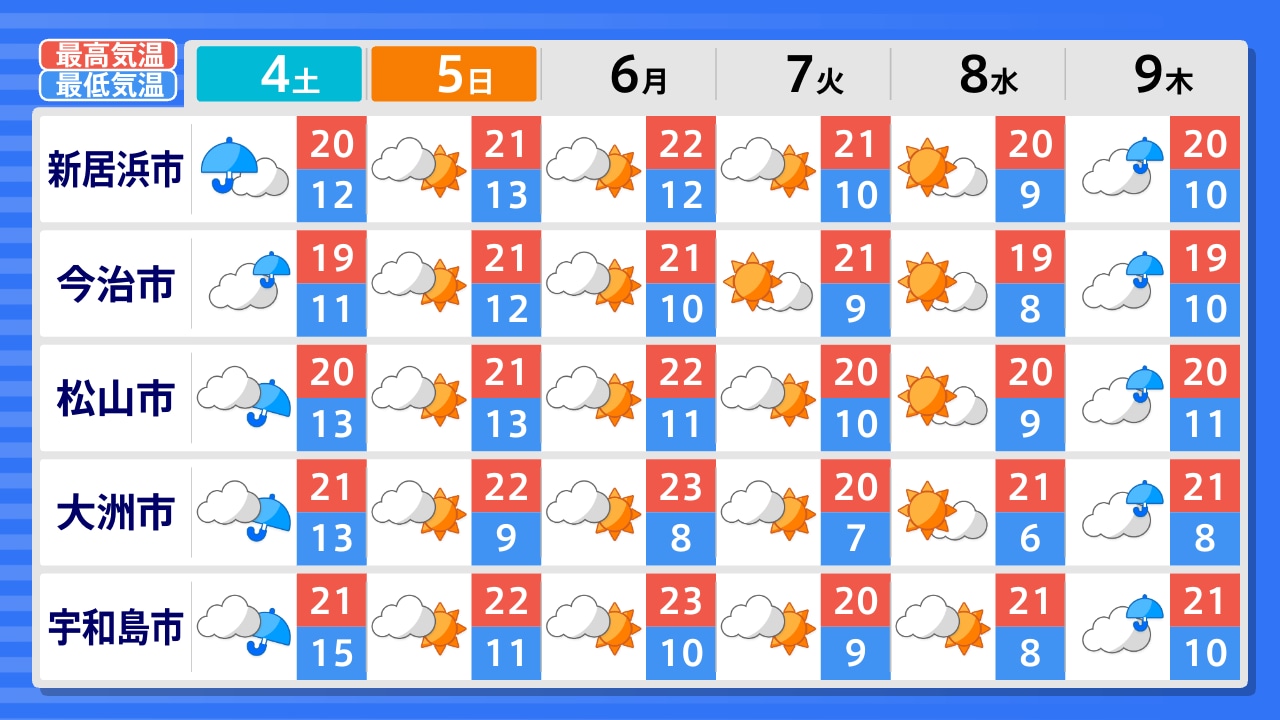伊方町 大洲市 宇和島市 松山市 久万高原町 今治市 新居浜市 四国中央市