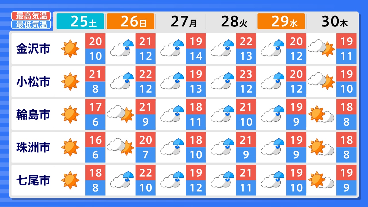 珠洲市 輪島市 七尾市 羽咋市 金沢市 小松市 加賀市