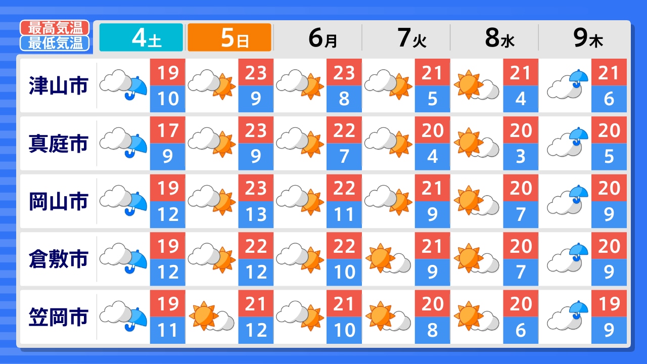 真庭市 新見市 高梁市 笠岡市 倉敷市 津山市 美作市 岡山市 備前市