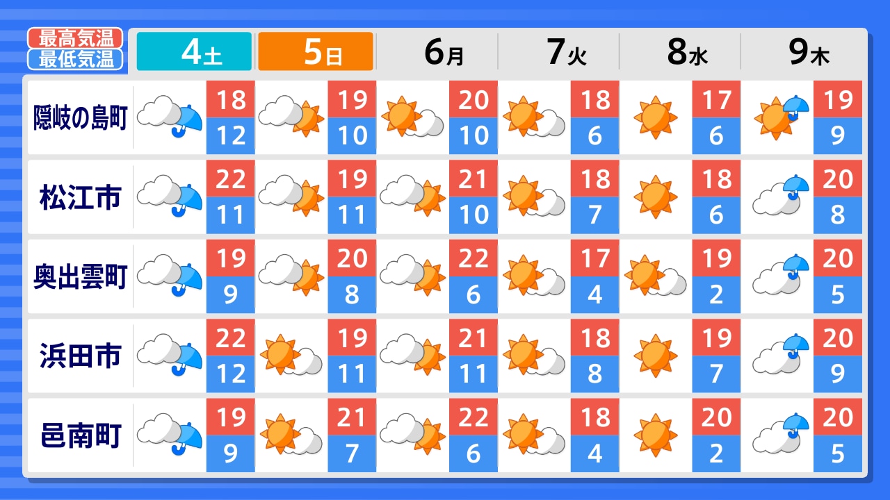 益田市 浜田市 大田市 邑南町 出雲市 松江市 奥出雲町 隠岐の島町