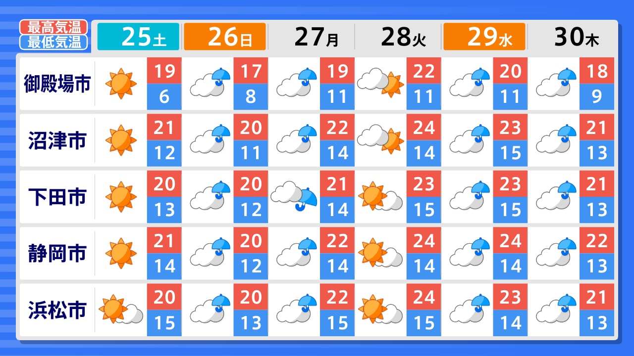 浜松市 川根本町 掛川市 御前崎市 静岡市 富士宮市 沼津市 御殿場市 熱海市 下田市
