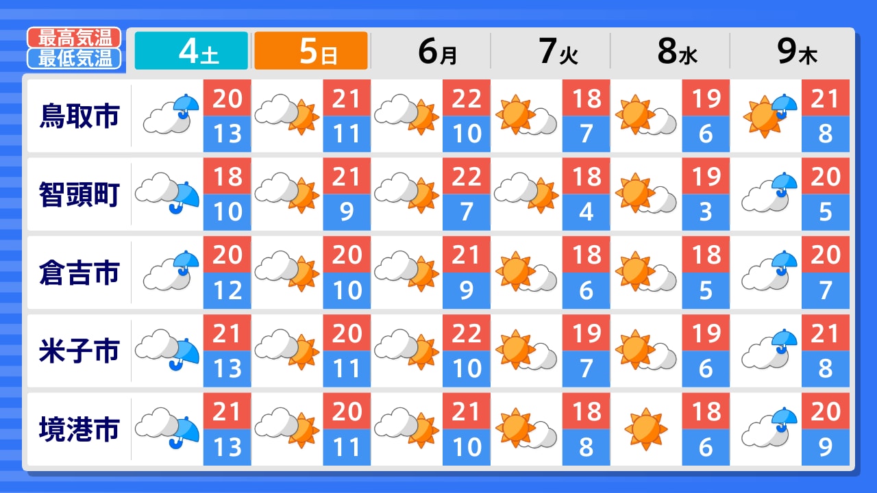 境港市 米子市 日南町 大山町 倉吉市 鳥取市 智頭町 若桜町