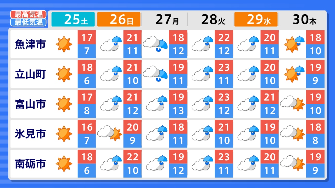 氷見市 高岡市 南砺市 富山市 朝日町 魚津市 立山町