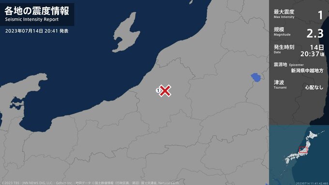 岩手県、宮城県で最大震度2の地震 岩手県・大船渡市、陸前高田市、釜石市、住田町、滝沢市、矢巾町、北上市