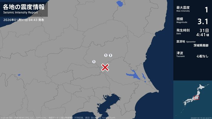 マグニチュード4.1 深さ約60km