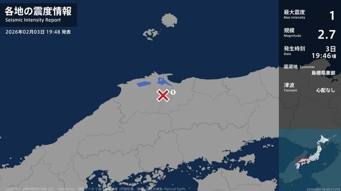 鳥取県で最大震度1の地震 鳥取県・鳥取南部町