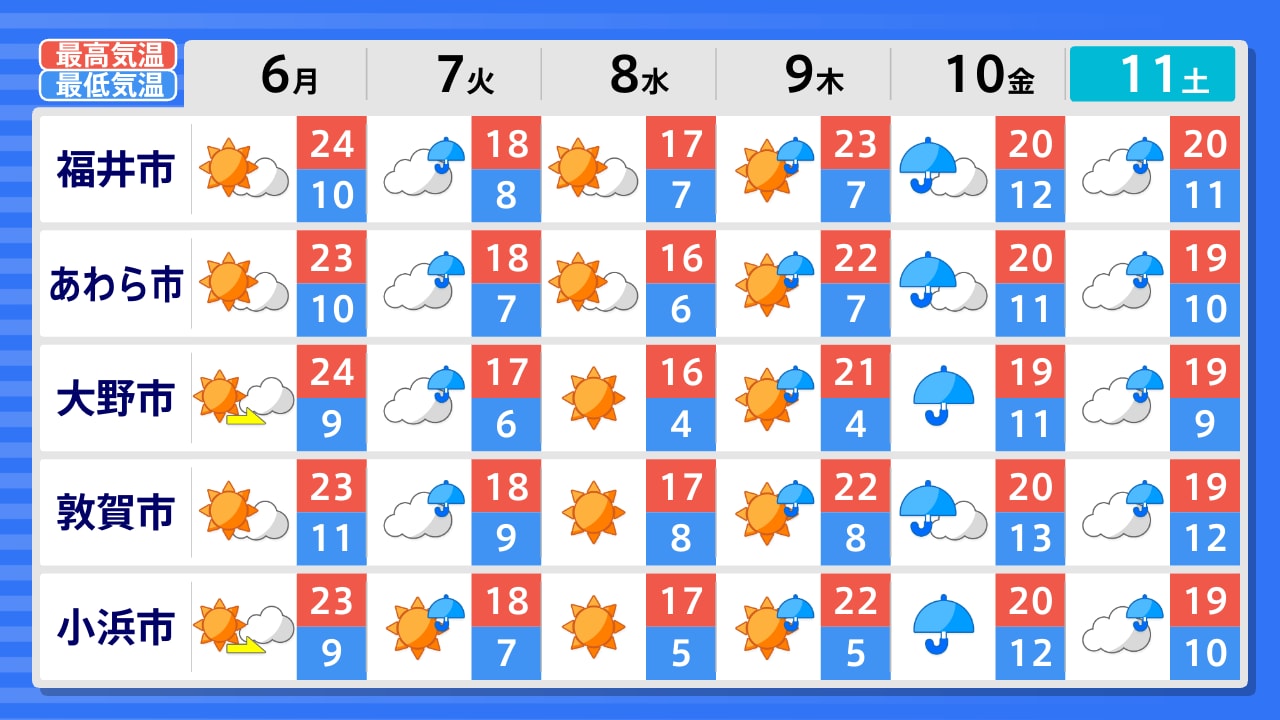 あわら市 大野市 福井市 南越前町 敦賀市 小浜市 高浜町