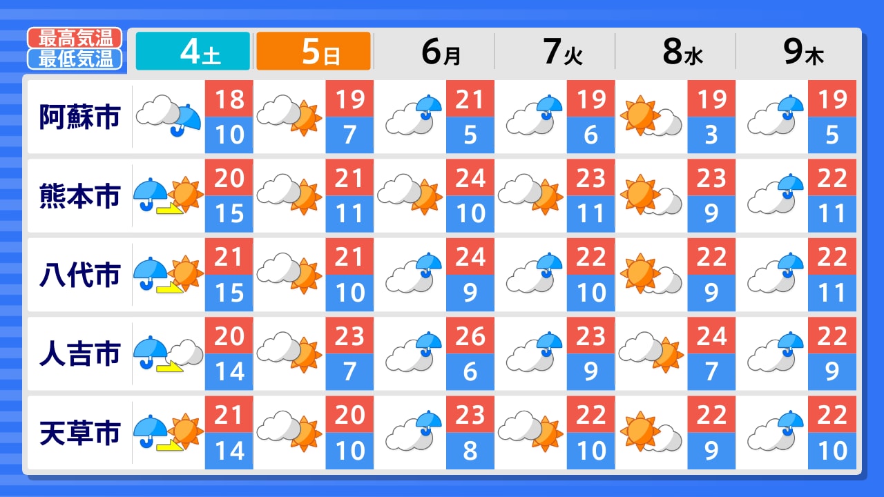 山鹿市 阿蘇市 熊本市 山都町 八代市 水上村 人吉市 天草市 水俣市