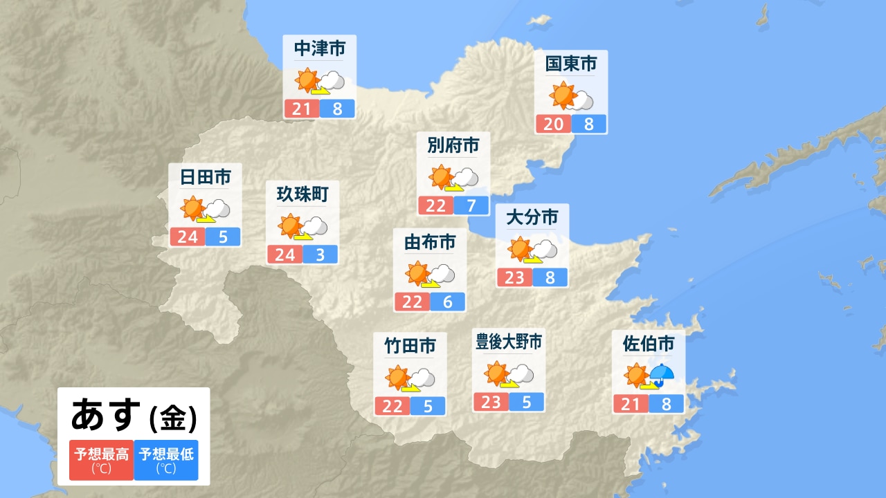 中津市 国東市 別府市 大分市 由布市 日田市 玖珠町 竹田市 豊後大野市 佐伯市