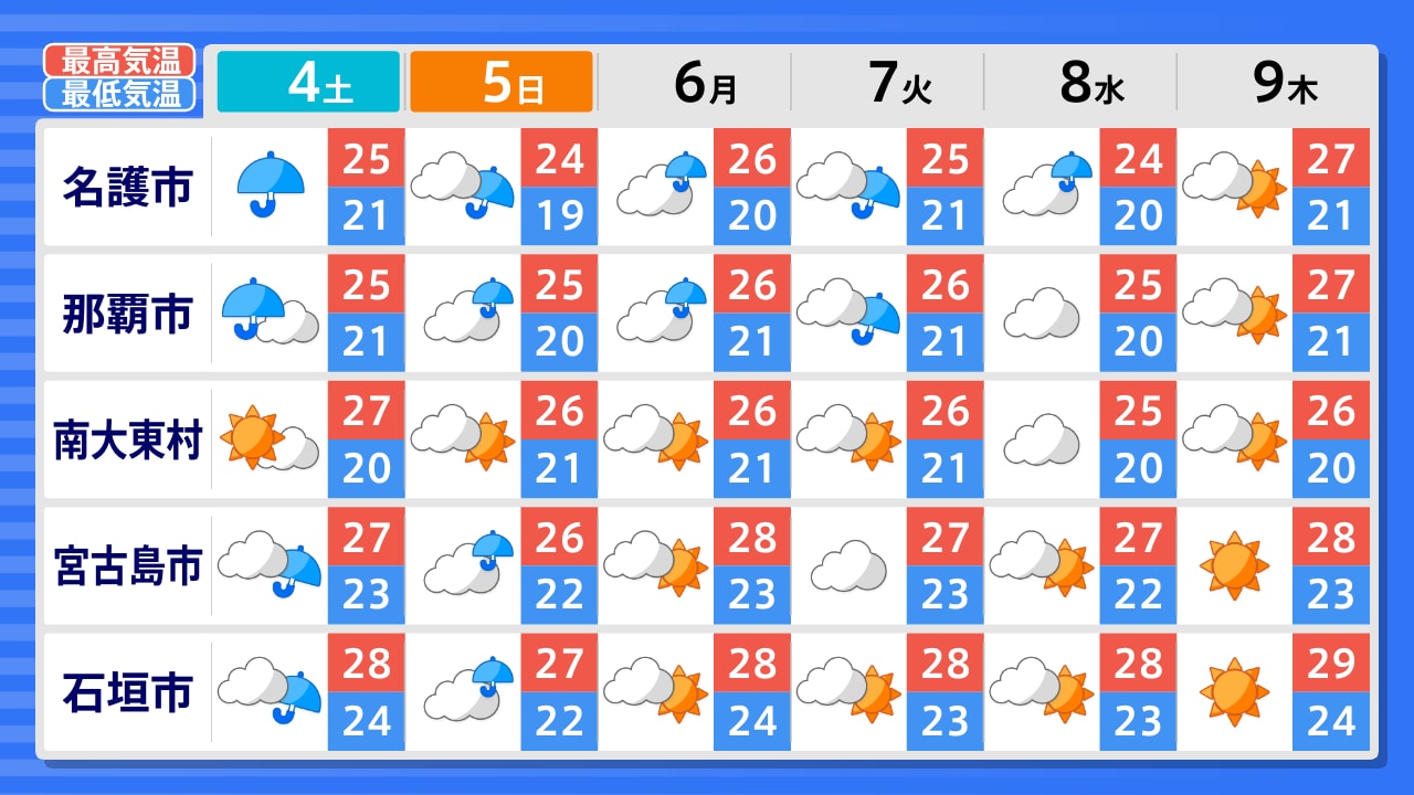 与那国町 石垣市 宮古島市 南大東村 名護市 久米島町 那覇市