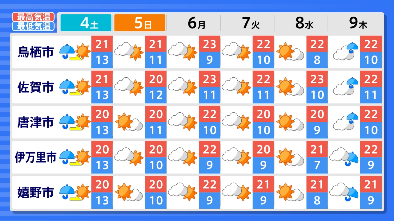 唐津市 伊万里市 武雄市 嬉野市 鹿島市 多久市 佐賀市 神埼市 鳥栖市