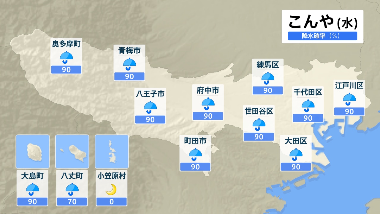 奥多摩町 青梅市 八王子市 大島町 八丈町 小笠原村 府中市 町田市 練馬区 世田谷区 千代田区 大田区 江戸川区