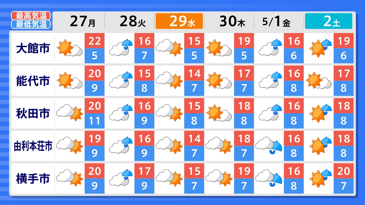 大館市 能代市 北秋田市 鹿角市 男鹿市 秋田市 仙北市 大仙市 由利本荘市 湯沢市 横手市