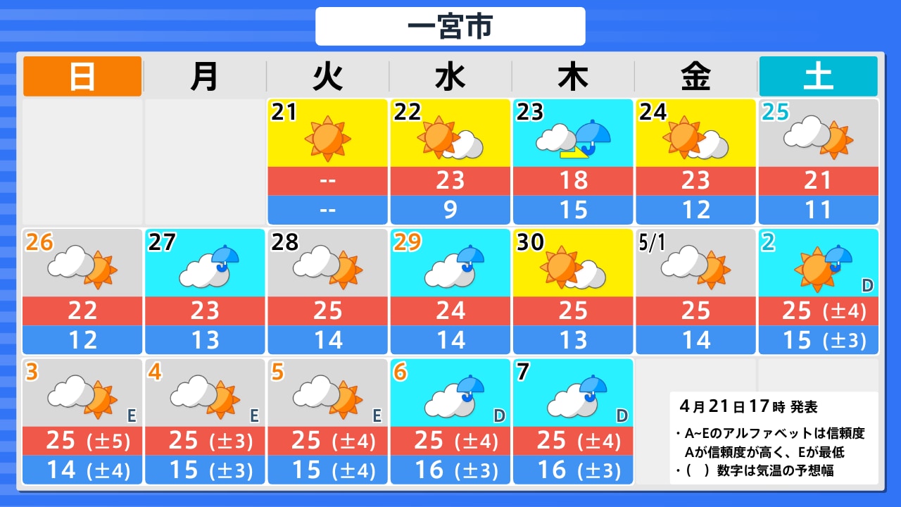 4月21日(火)の天気