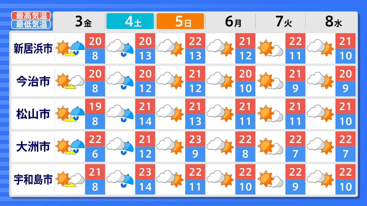 伊方町 大洲市 宇和島市 松山市 久万高原町 今治市 新居浜市 四国中央市