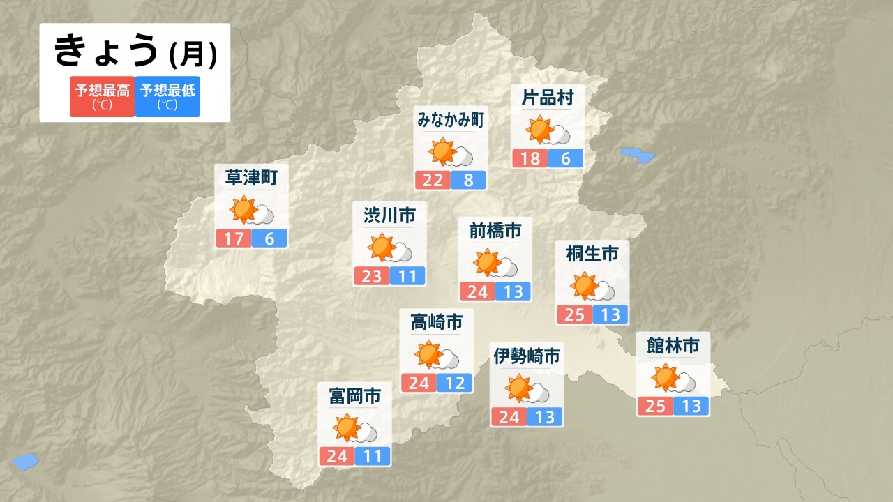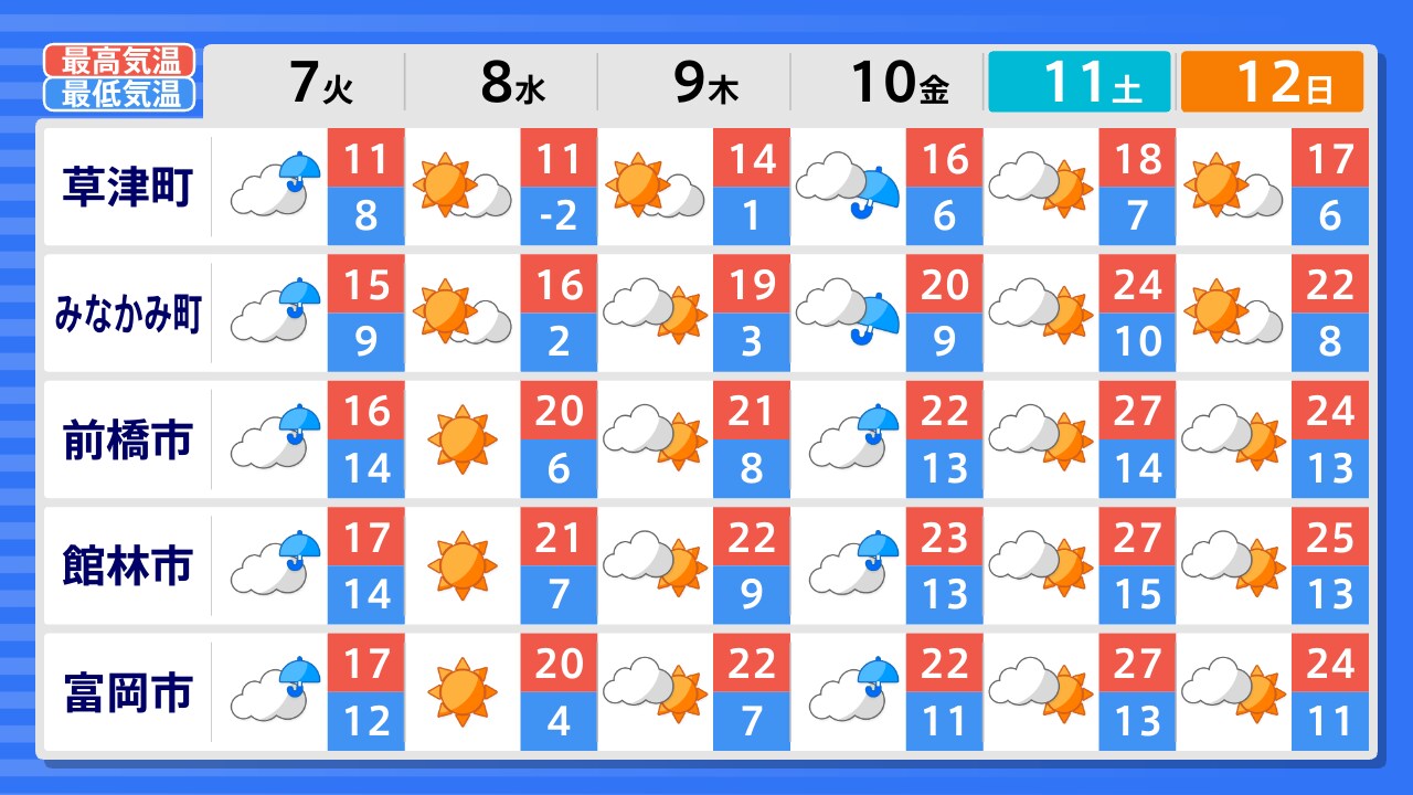 草津町 みなかみ町 片品村 渋川市 前橋市 桐生市 高崎市 富岡市 伊勢崎市 館林市