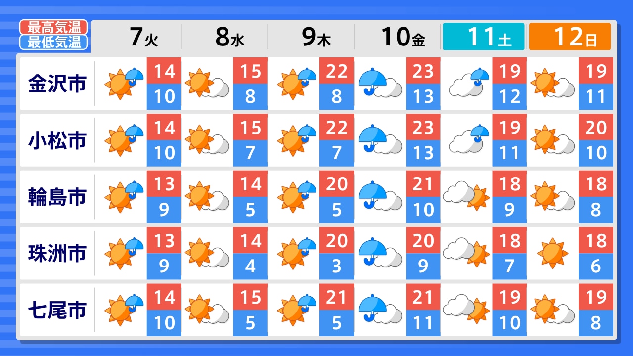 珠洲市 輪島市 七尾市 羽咋市 金沢市 小松市 加賀市