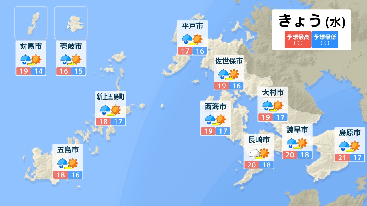 対馬市 壱岐市 新上五島町 五島市 平戸市 佐世保市 大村市 西海市 長崎市 諫早市 島原市