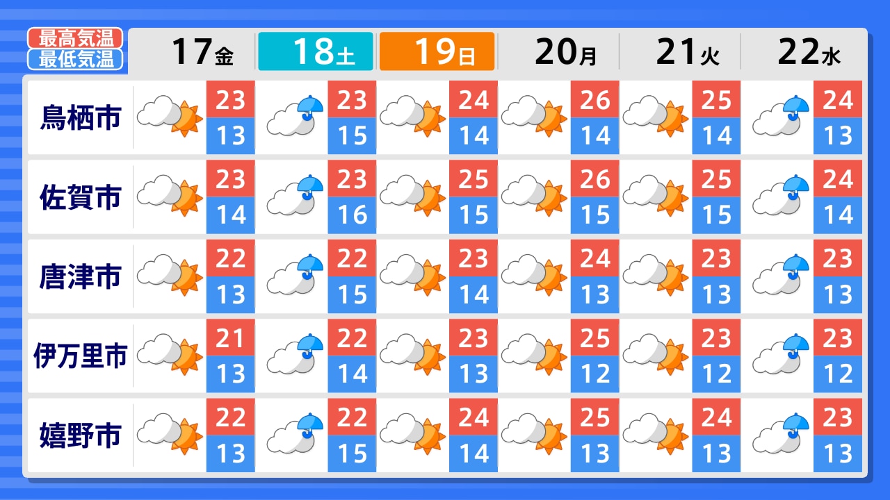 唐津市 伊万里市 武雄市 嬉野市 鹿島市 多久市 佐賀市 神埼市 鳥栖市