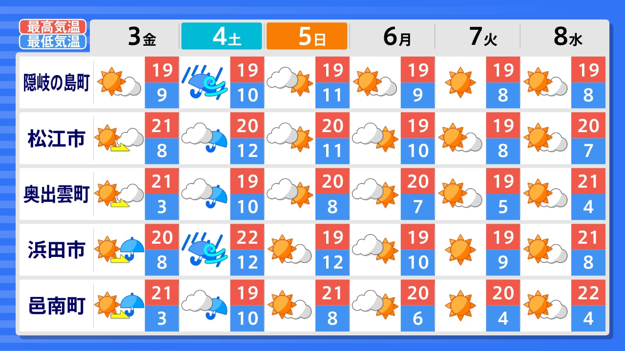 益田市 浜田市 大田市 邑南町 出雲市 松江市 奥出雲町 隠岐の島町