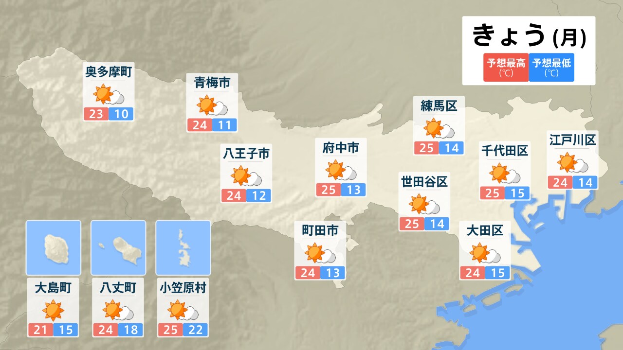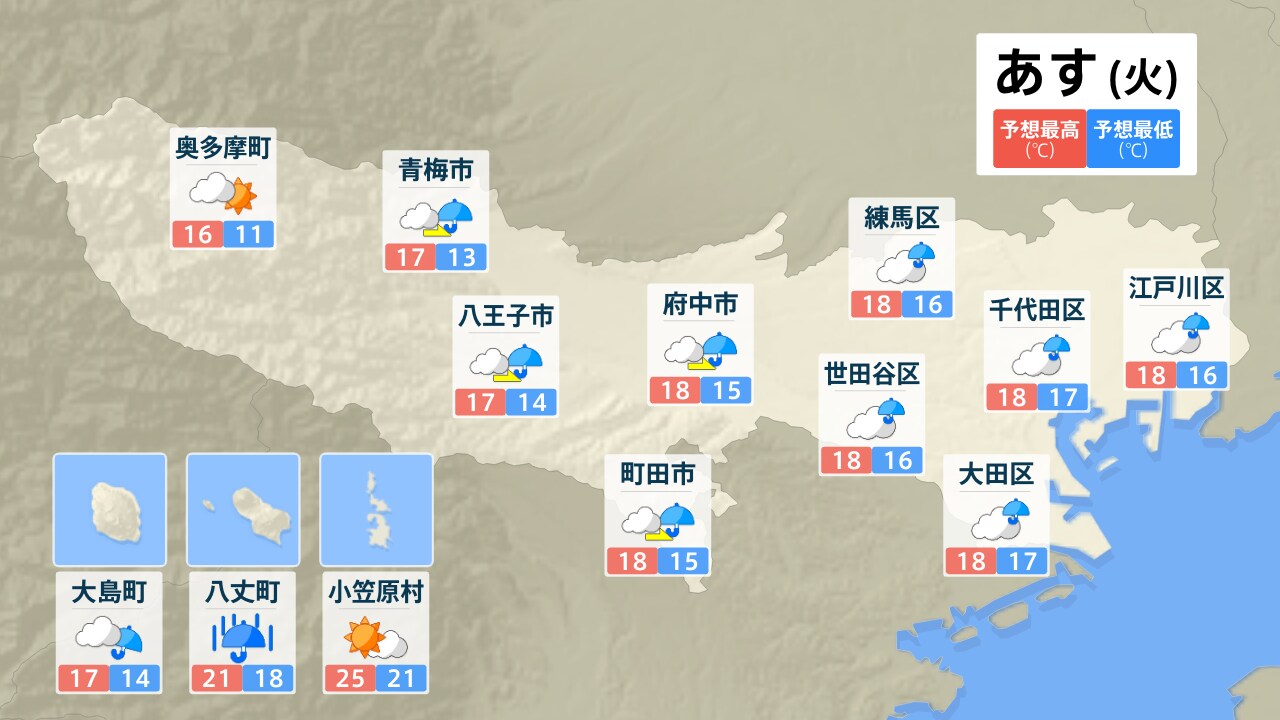 奥多摩町 青梅市 八王子市 大島町 八丈町 小笠原村 府中市 町田市 練馬区 世田谷区 千代田区 大田区 江戸川区