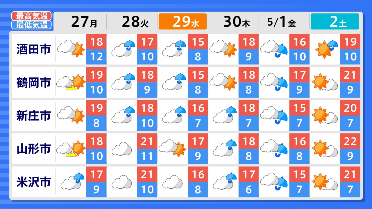 酒田市 新庄市 最上町 鶴岡市 寒河江市 村山市 山形市 長井市 小国町 米沢市