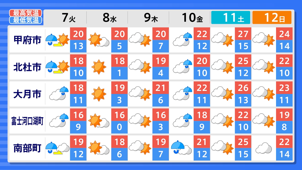 北杜市 韮崎市 甲府市 身延町 南部町 甲州市 大月市 上野原市 富士河口湖町 山中湖村