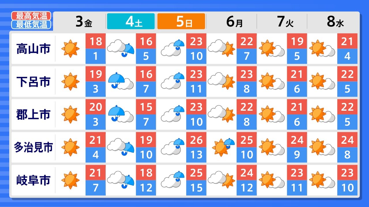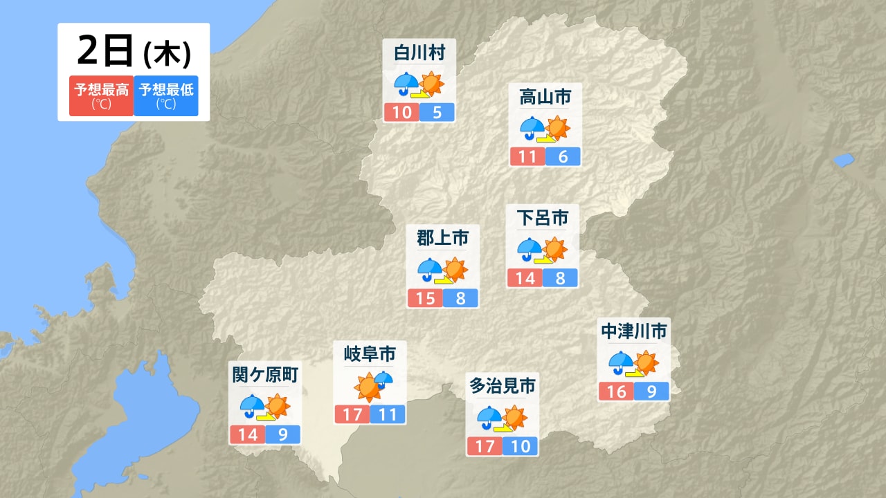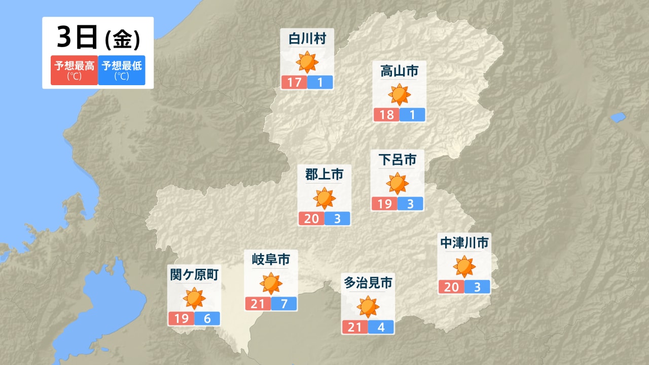 白川村 高山市 下呂市 郡上市 中津川市 多治見市 岐阜市 関ケ原町
