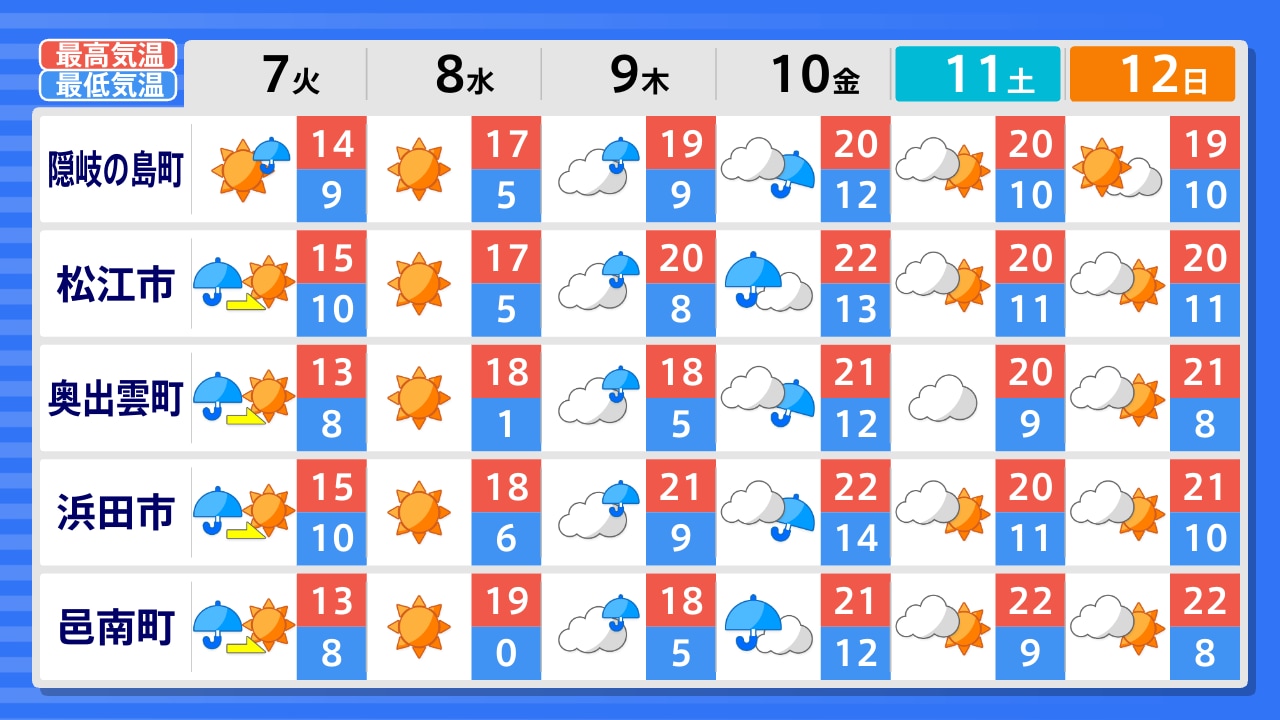 益田市 浜田市 大田市 邑南町 出雲市 松江市 奥出雲町 隠岐の島町