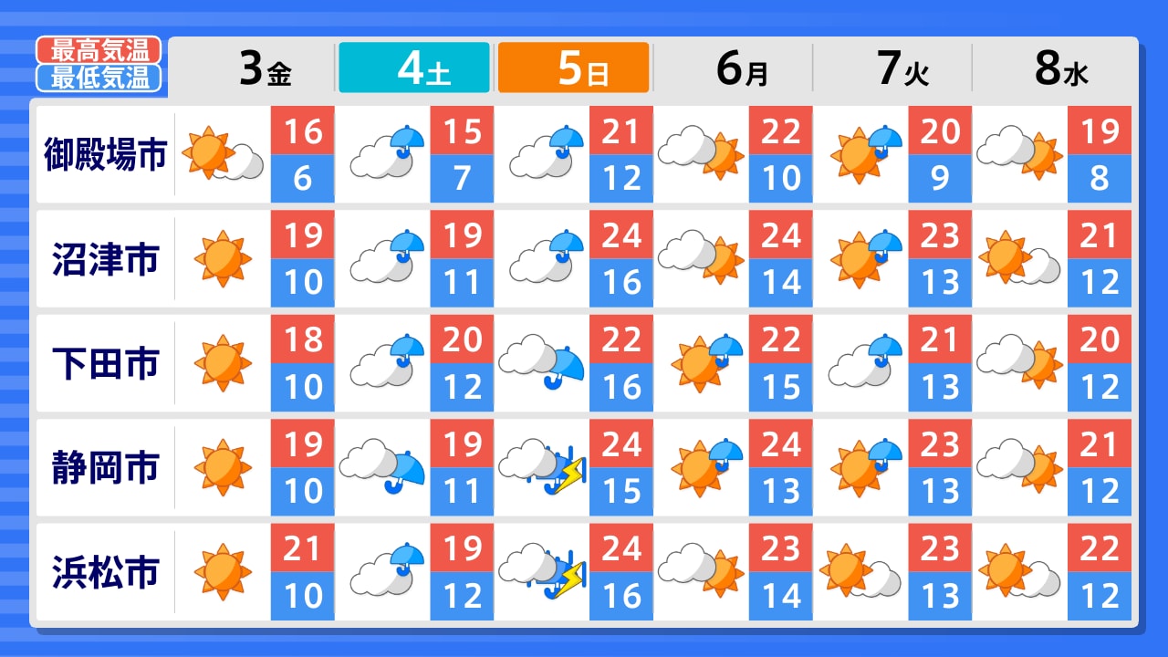 浜松市 川根本町 掛川市 御前崎市 静岡市 富士宮市 沼津市 御殿場市 熱海市 下田市